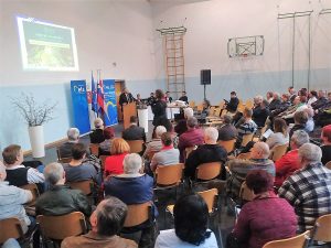 Fara, Kostel – 7. april 2018 – V okviru omizij na temo Pametih vasi je poslanec Evropskega parlamenta Franc Bogovič (SLS/EPP) včeraj obiskal tudi Občino Kostel. Kot je povedal po zaključku, se je v telovadnici Osnovne šole Fara zbralo več kot devetdeset obiskovalcev, kar je za malo odmaknjeno obmejno občino z okoli 650 prebivalci odličen odziv, s tem pa se še bolj potrjuje dejstvo, da je projekt Pametnih vasi pritegnil pozornost podeželskih prebivalcev širom Slovenije.